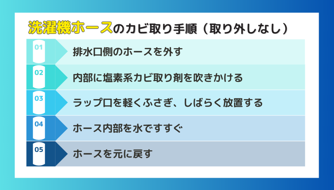 ホースのカビ取りを自力で行う場合は、以下の手順を参考にしてください。