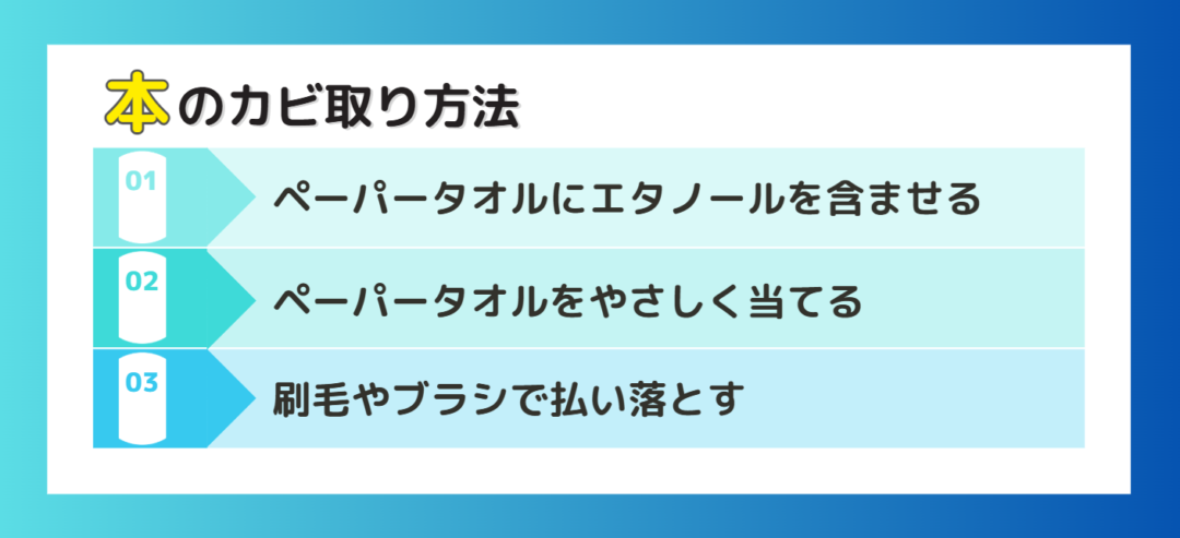 ここからは、本のカビを取り除く基本的な方法を解説します。