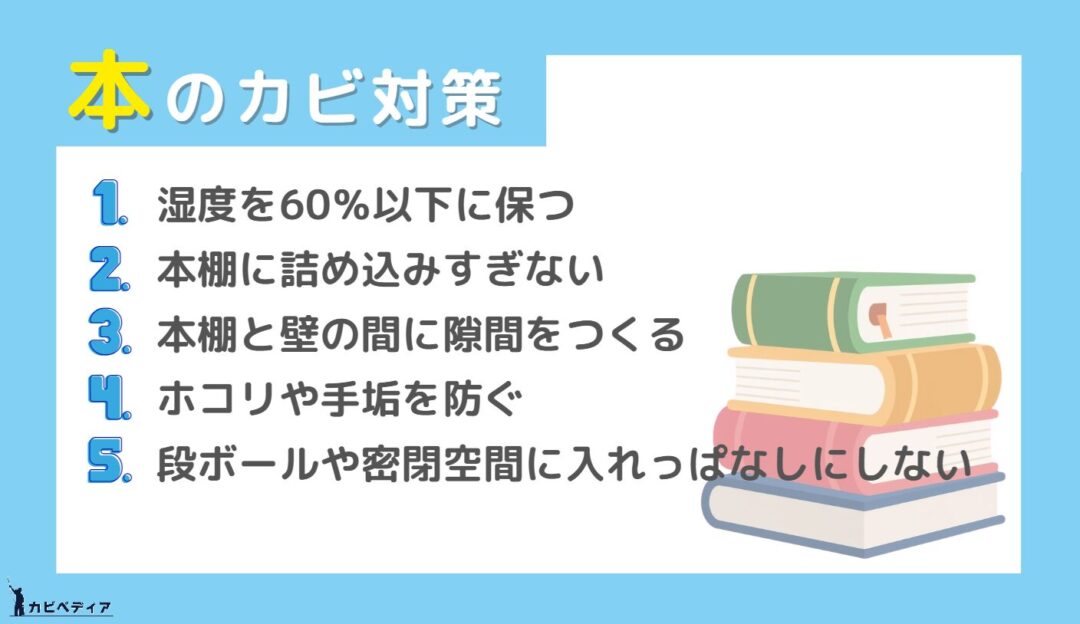 本のカビは、除去しても湿気やホコリが多い環境では再発しやすくなります。