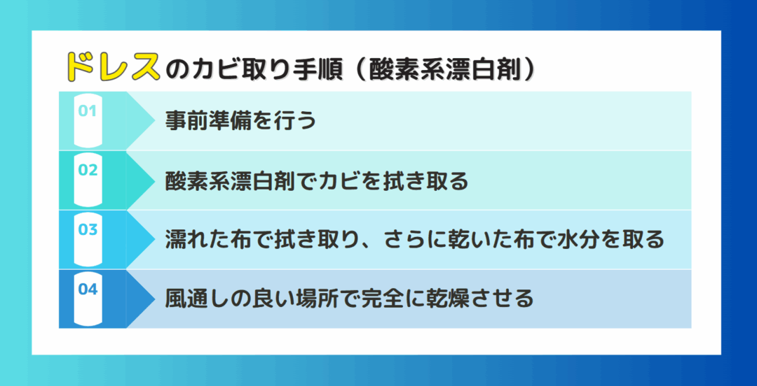 清潔な布に酸素系漂白剤(液体タイプ)を適量含ませ、カビが気になる部分に優しく叩くように当てます。