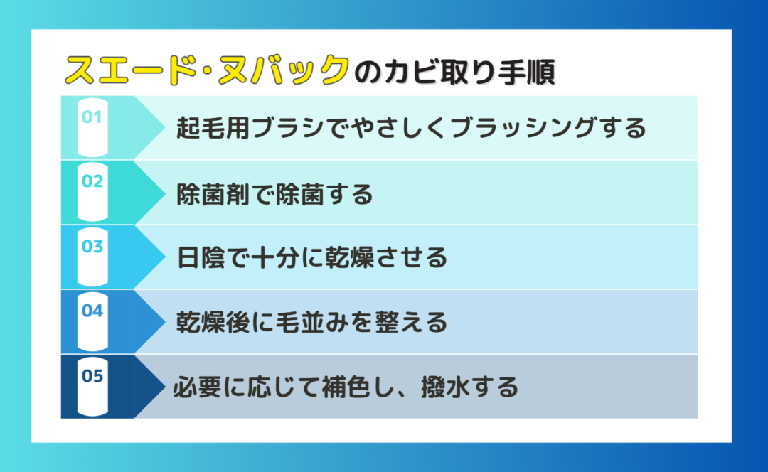 スエードやヌバックは毛足の隙間にカビが入りやすいため、ブラッシングが重要です。