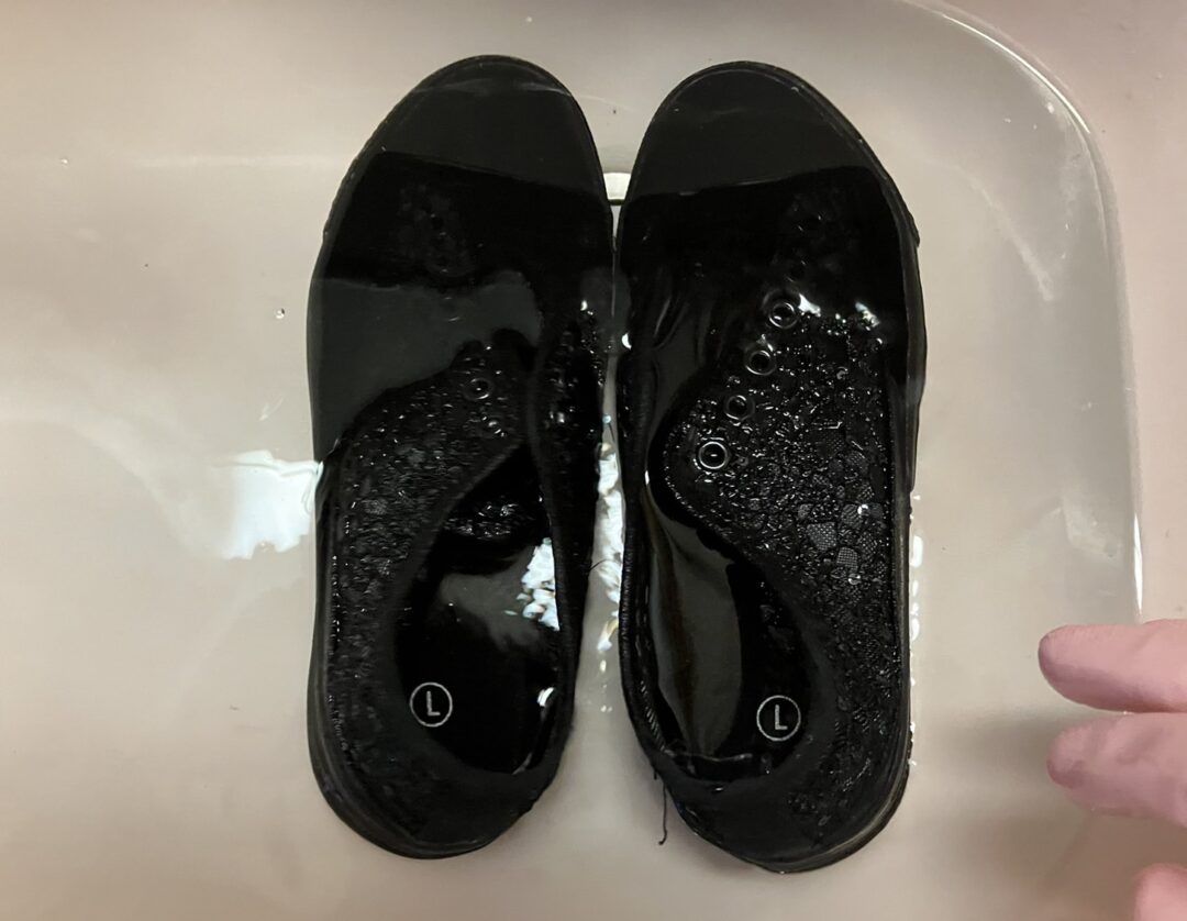 - 中敷きを外した下が黒ずんでいる、または粉っぽい