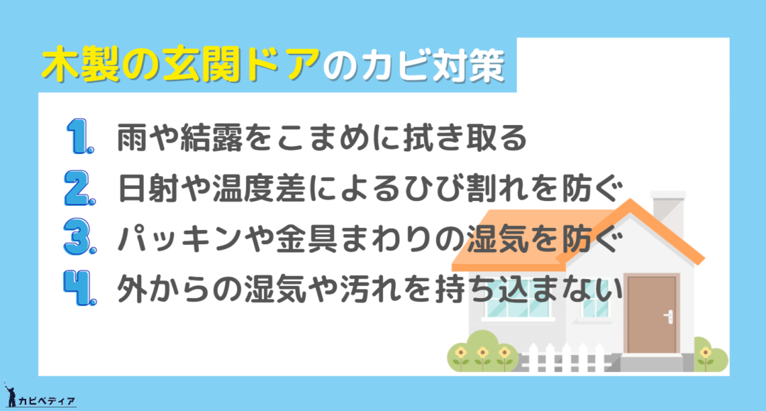 木製ドアのカビ予防は、湿気を残さない・汚れをためない・定期的に風を通すことが基本です。
