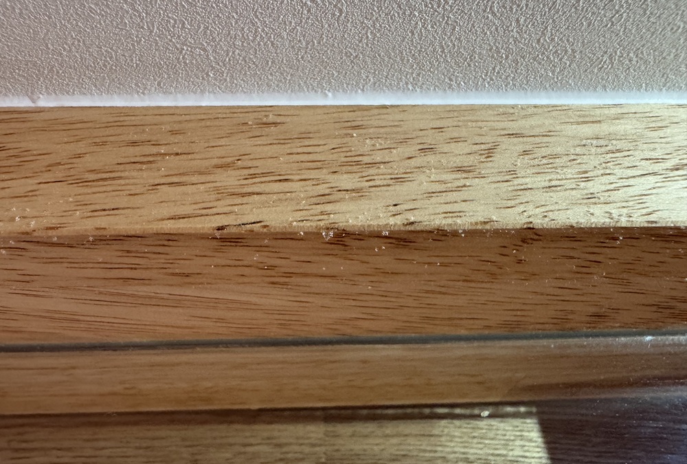このような状態では、表面を拭くだけでは再発しやすく、カビが木の内部にまで広がっている可能性があります。