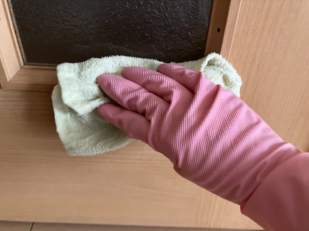 特に取っ手まわり・ドア下部・縁の角部分は汚れが溜まりやすいので、重点的にケアします。
