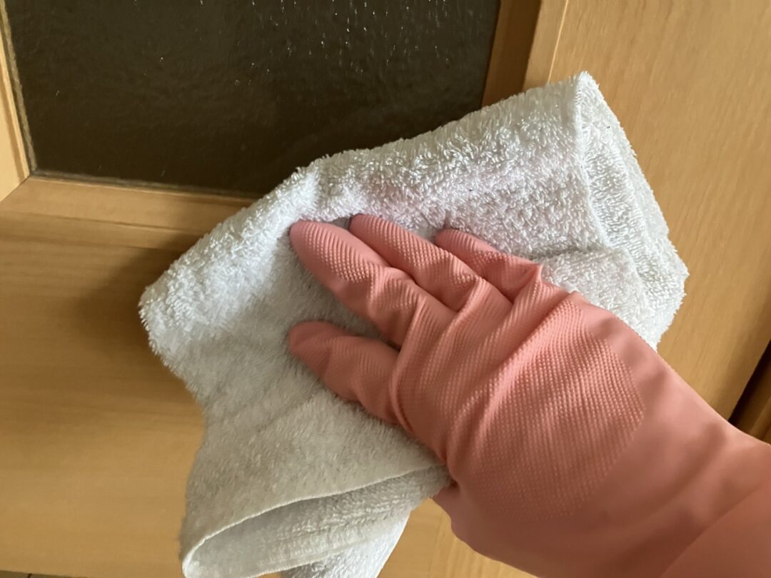 濡れた手でドアを触ったり、洗面所や脱衣所の近くにあるドアでは、結露や水滴が発生することがあります。